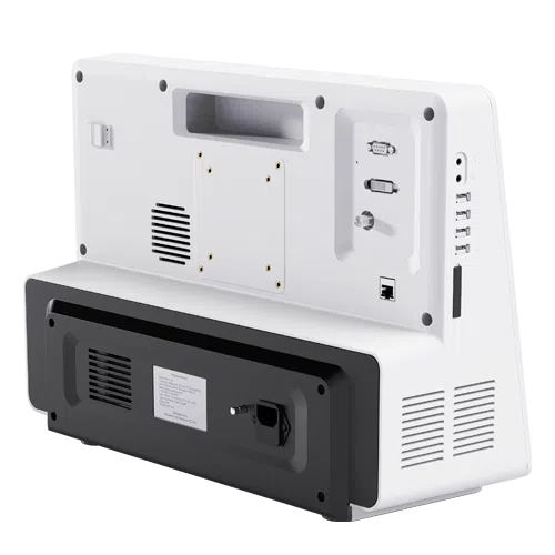 Hela enheten väger endast 8,5kg och tas enkelt med ut på fältet eller är din trofasta tjänare inne på kliniken, där du även kan koppla på en ännu större monitor på ett enkelt sätt.