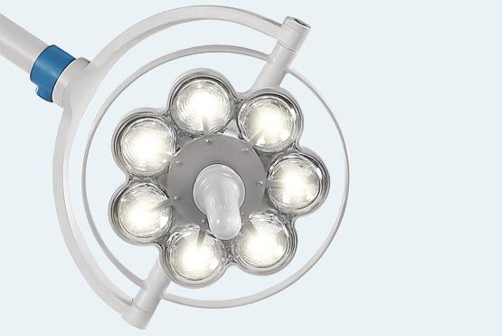The examination light EMALED 200D offers an optimum and glare-free illumination of the treatment field during any kind of medical examinations. The light can be brought to any desired position due to the height-adjustable spring arm and the horizontal rotation of 360°.