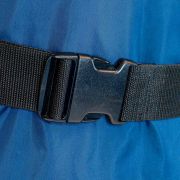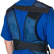 Låsning av remmar på mage med mekaniskt klick-lås och kardborrelåsning av remmar på bröstrygg som gör att förklädet sitter kvar vid böjning framåt.